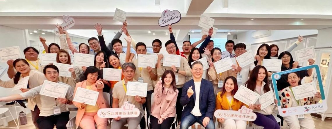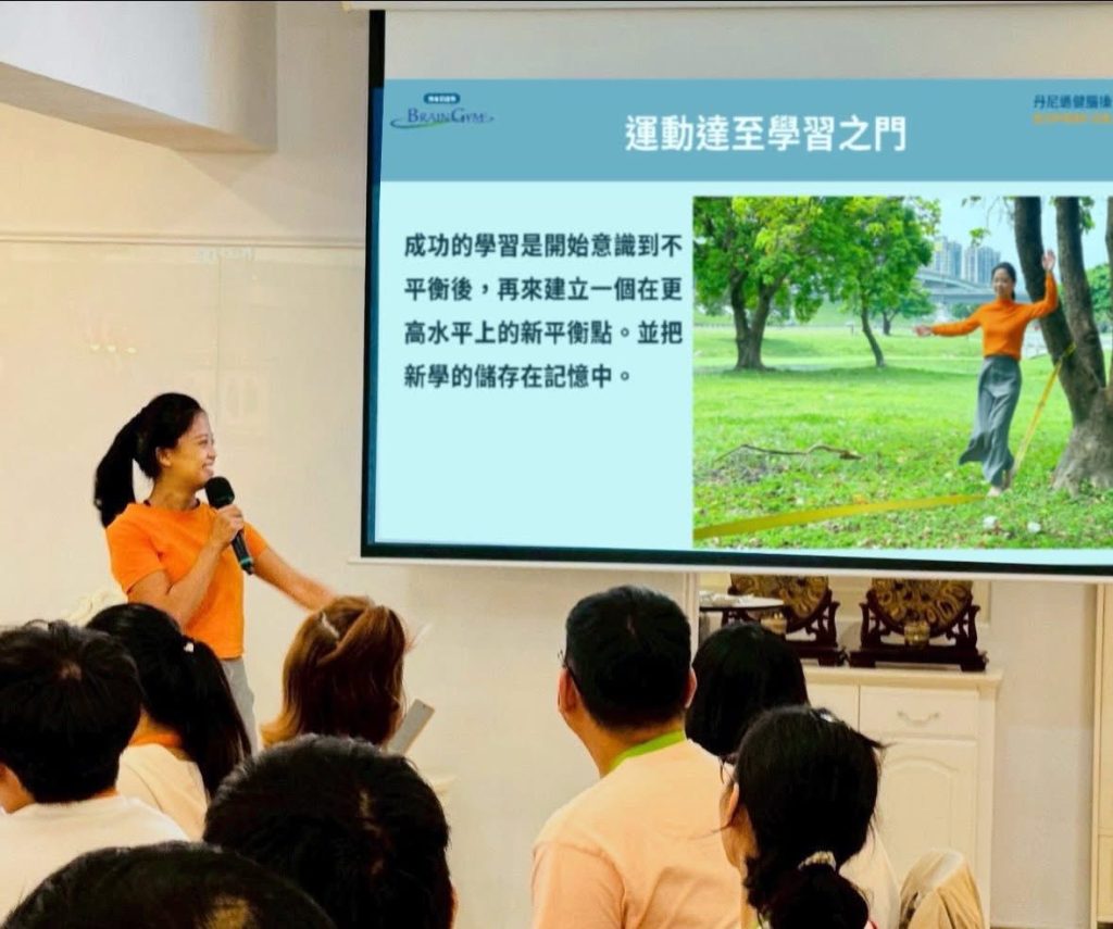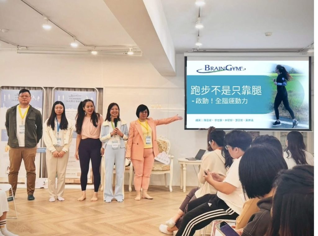 BG110 丹尼遜健腦操® 26式動作導師培訓課程,旨在協助學員具備教授 BG104《丹尼遜健腦操®26式》的專業能力。本場課程由美國教育肌應學基金會授證,兩位許可丹尼遜健腦操® 26 式動作導師培訓師 蘇志華老師、王紫晴老師,共同帶領27位來自台灣北中南的肌應學愛好者,這也是台灣首次開設 BG110 丹尼遜健腦操® 26式動作導師培訓課程