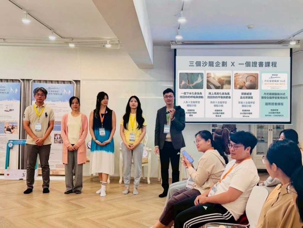 我們分為五大組別上台發表市場發展計畫。大家將 #健腦操的主題性、#市場的需求性 與 #個人推廣的熱忱 結合在一起,構思出各式風格獨具的主題沙龍,也展現丹尼遜健腦操®26 式在生活與學習中的多元化應用!