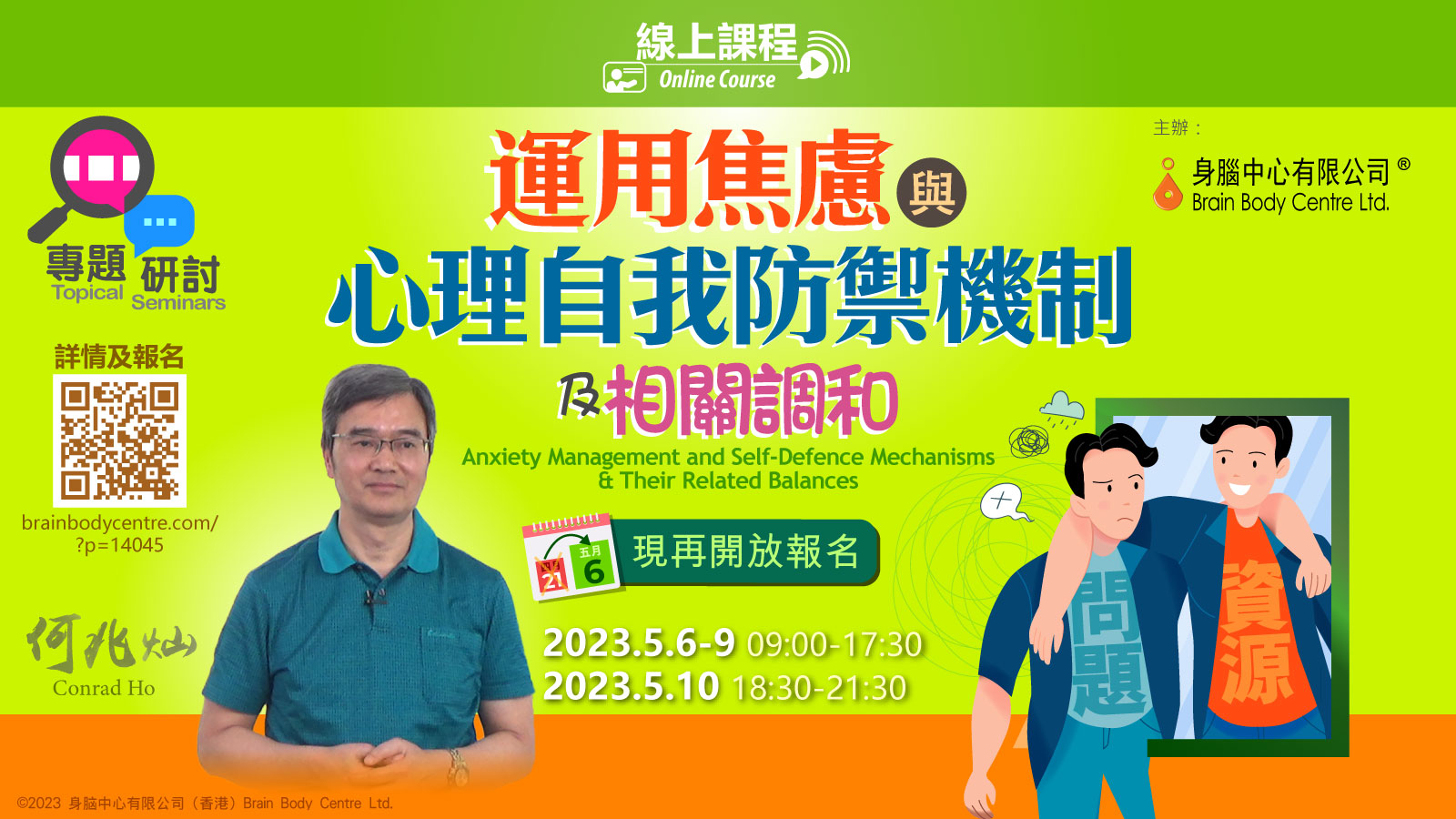 「專題研討」線上課程 – 運用焦慮與心理自我防禦機制及相關調和(線上) | 導師:何兆燦 | 2023.5.6-10(週六至三)