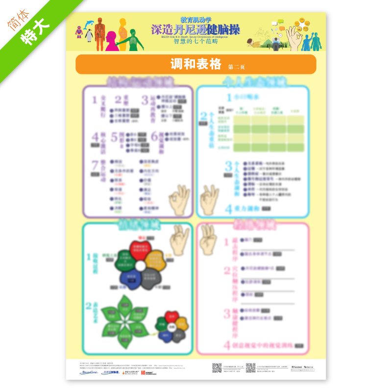 基础丹尼逊®健脑操综合调和挂图 (第一页) : 三个范畴表格 – 特大 (简体中文)